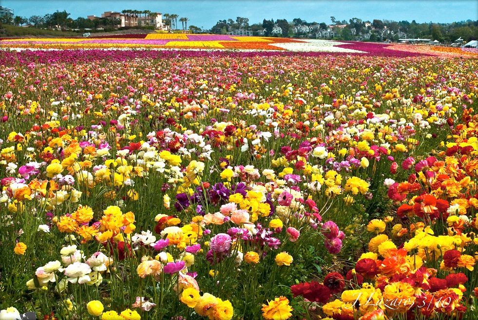 For over sixty years, when it becomes spring time the rolling hills of Carlsbad, North County turns into one of the most spectacular and coordinated displays of natural color and beauty anywhere . The nearly 50 acres of radiance is made up by Giant Tecolote Ranunculus flowers.